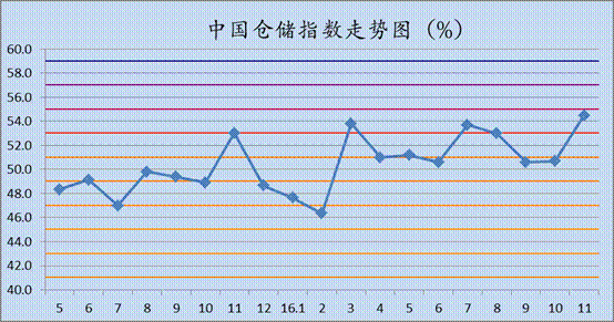 中國物流與采購聯(lián)合會與中儲發(fā)展股份有限公司聯(lián)合調(diào)查的2016年11月中國倉儲指數(shù)為54.5%,較上月回升3.8個百分點(diǎn),連續(xù)九個月位于擴(kuò)張區(qū)間,并創(chuàng)2015年3月份以來的新高。各分項(xiàng)指數(shù)中,業(yè)務(wù)利潤指數(shù)及企業(yè)員工指數(shù)較上月有所下降,其余指數(shù)均有不同程度的回升。