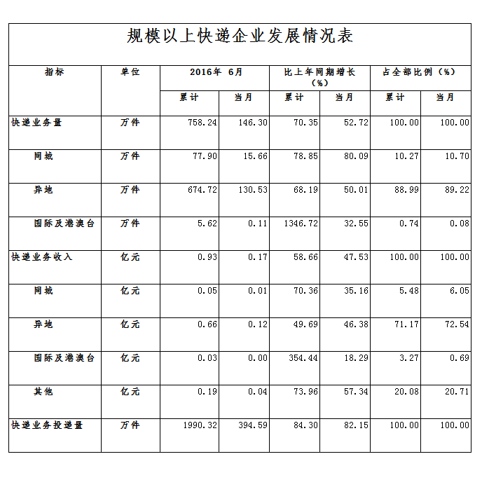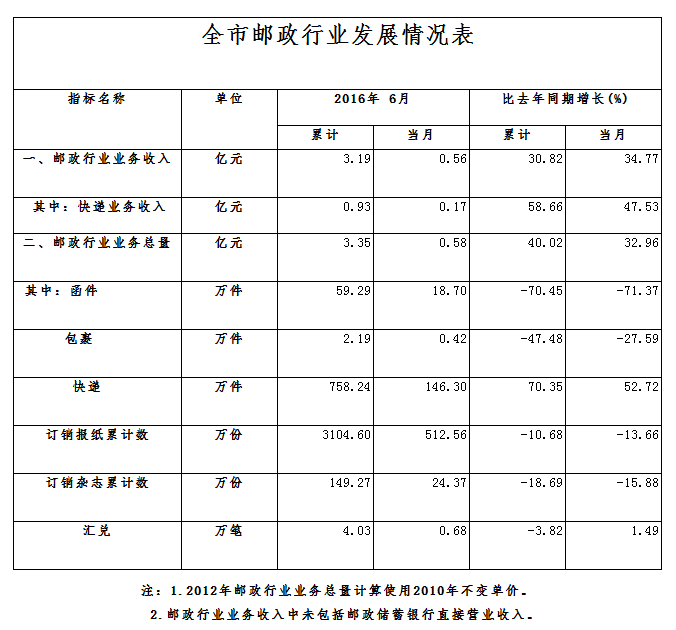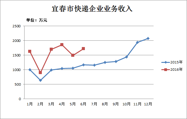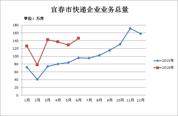 2016年1-6月,宜春市郵政企業(yè)和規(guī)模以上快遞服務(wù)企業(yè)業(yè)務(wù)收入(不包括郵政儲蓄銀行直接營業(yè)收入)累計3.19億元,同比增長30.82%;業(yè)務(wù)總量3.35億元,同比增長40.02%。