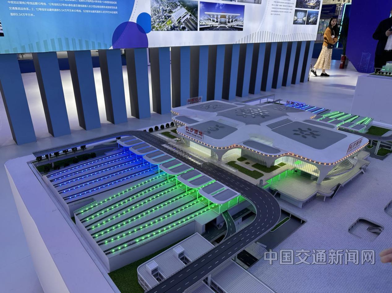 展區(qū)另一側(cè),長沙西站綜合交通樞紐(簡稱“長沙西站”)的模型吸引了不少人駐足。長沙西站位于湖南湘江新區(qū),總建筑面積約49萬平方米,車站規(guī)模12臺22線,是國家“八縱八橫”鐵路網(wǎng)“渝長廈”高速鐵路大通道的重要節(jié)點,也是長株潭地區(qū)交通樞紐“三主五輔”主要客站。
