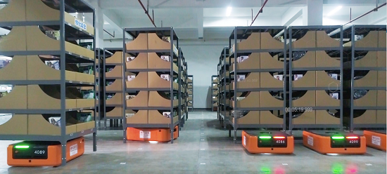 進(jìn)入傳化云倉(cāng)智能一號(hào)倉(cāng)內(nèi),一排排AGV移動(dòng)機(jī)器人,有條不紊的穿梭在上千個(gè)貨架中,自動(dòng)執(zhí)行上架、揀選、補(bǔ)貨、退貨、盤(pán)點(diǎn)等訂單任務(wù)。機(jī)器人可按照系統(tǒng)設(shè)定的路徑,自主將貨品所在貨架從倉(cāng)庫(kù)搬送到員工處理區(qū),將需補(bǔ)貨的貨架搬運(yùn)至補(bǔ)貨工作區(qū)。