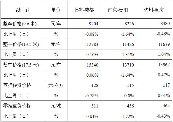 表1 本周部分線路平均價(jià)格及環(huán)比情況對(duì)比