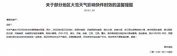 日前,各大主流快遞公司紛紛發(fā)布快遞延誤公告。